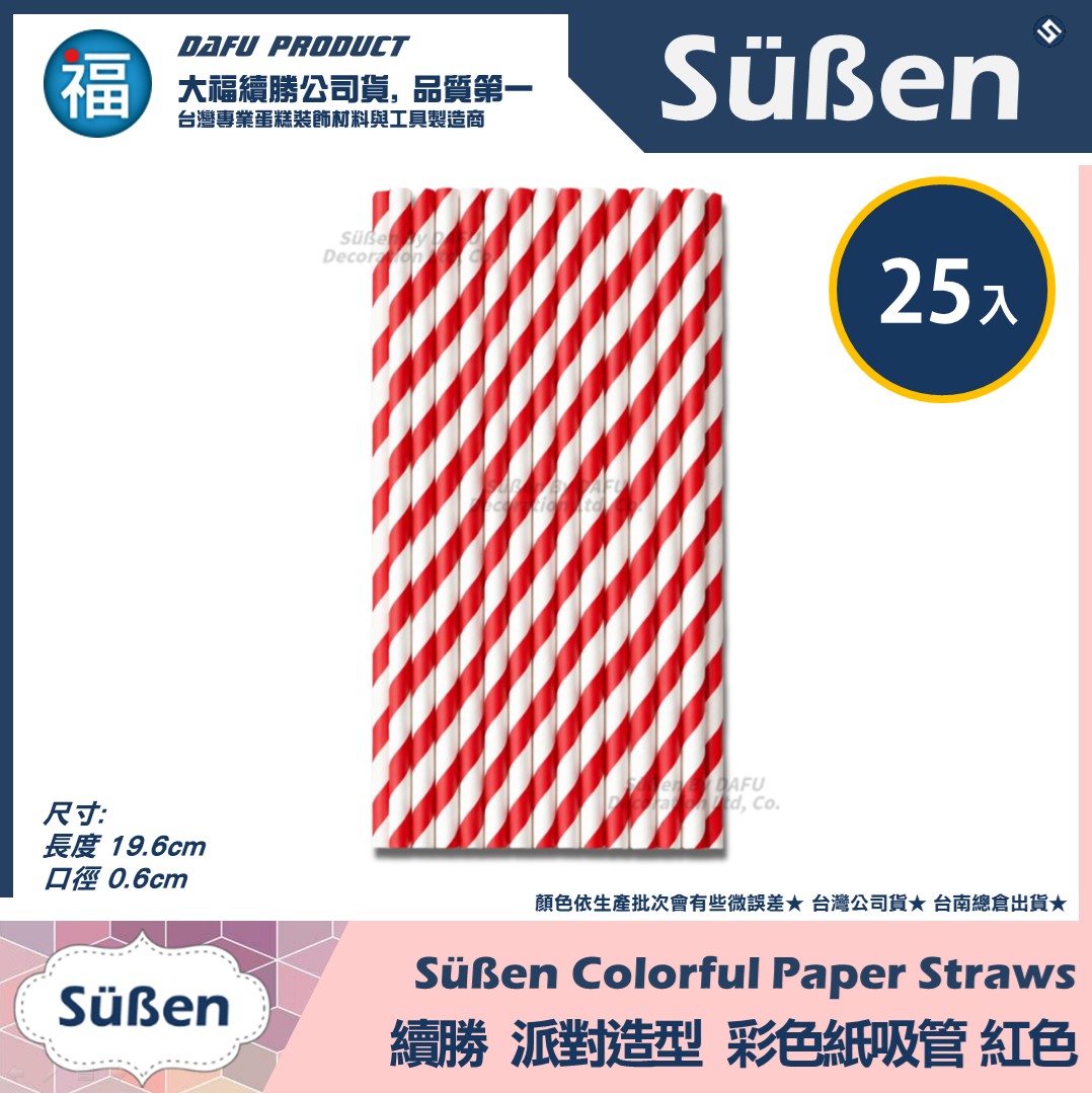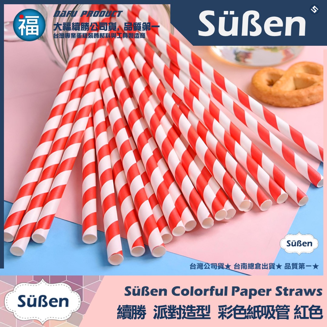 【續勝】派對彩色紙吸管【紅色】25入/包 蛋糕插牌 棉花糖紙棒